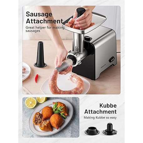 KEENSTAR Electric Meat Grinder, Sausage Stuffer Maker 450W Food Grinder with Blade & 3 Plates, Sausage Stuffer Tubes & Kubbe Kit, Stainless Steel Meat Mincer Machine for Home Kitchen Use