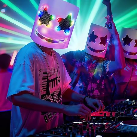 • KEHOO Halloween Mask, Christmas Party Mask, Light Up Flashing DJ Music Festival Halloween Props Mask for Halloween Xmas Costume Party