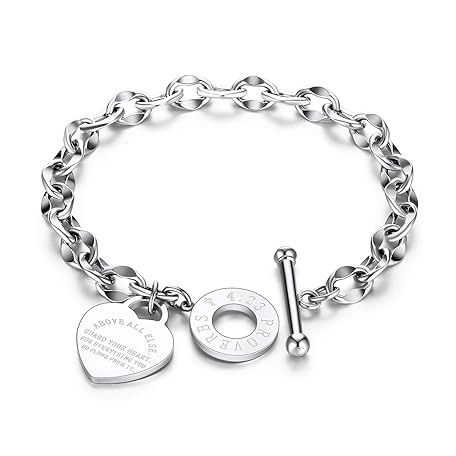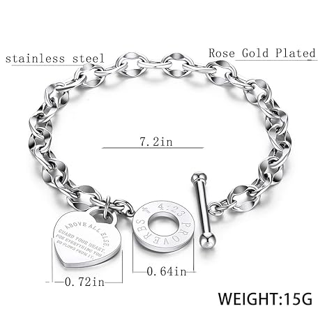 Sản phẩm kelistom 316L Stainless Steel Love Heart Charm Bracelet for Women Romantic Gift Silver/Rose/18k Gold Plated OT Clasp Bracelets đang được bán với giá ưu đãi là $10.8891 tại nước Mỹ.