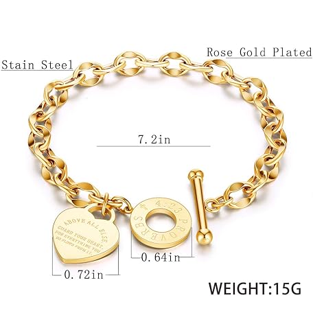 Sản phẩm kelistom 316L Stainless Steel Love Heart Charm Bracelet for Women Romantic Gift Silver/Rose/18k Gold Plated OT Clasp Bracelets đang được bán với giá ưu đãi là $10.8891 tại nước Mỹ.