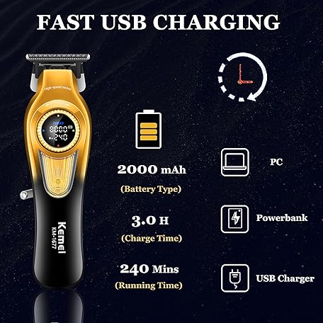 KEMEI 1677 Beard Trimmer for Men, Professional Hair Clippers, Cordless Barber Clipper with LED Display, DLC T-Blade Hair Trimmer, 8000 RPM Turbo Brushless Motor