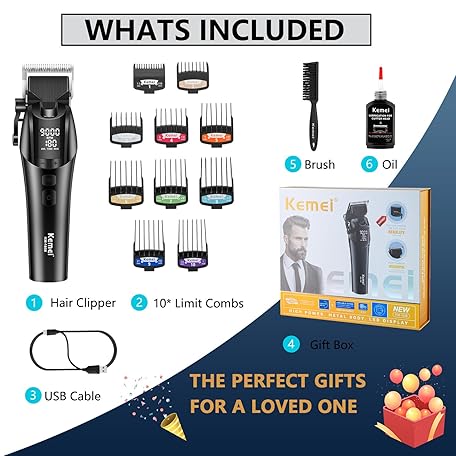 KEMEI 1858 Professional Hair Clippers for Men, Rechargeable Barber Clipper for Hair Cutting, Cordless Hair Trimmer with LED Display & 5-Speed Adjustable Settings, Gifts for Men