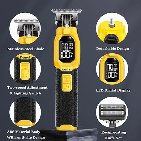 KEMEI 1878 Beard Trimmer for Men, 3 in 1 Hair Clippers, Shavers for Men, Cordless Nose Hair Trimmer with Removable Head, LED Display
