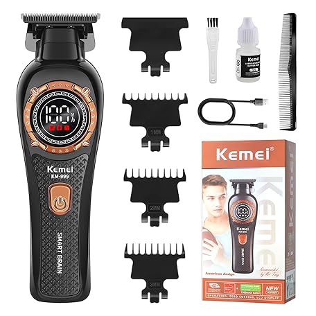 KEMEI 999 Professional Hair Clipper for Men, Cordless Electric Beard Trimmer Men, Zero Gapped T-Blade Hair Trimmer with LCD Display and 3 Guide Combs