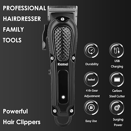 Thương hiệu KEMEI là cái tên nổi tiếng được rất nhiều khách hàng trên thế giới chọn lựa. Với kiểu dáng đẹp mắt, sang trọng, sản phẩm KEMEI Hair Clippers for Men, Professional Barber Clipper for Hair Cutting Cordless & Corded, Rechargeable Beard Trimmer là sự lựa chọn hoàn hảo nếu bạn đang tìm mua một món cho riêng mình.