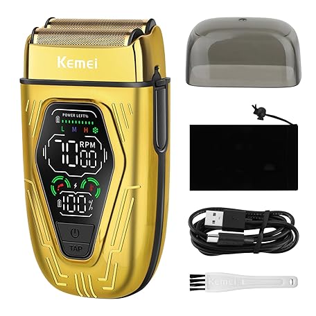 KEMEI KM-T360 Professional Foil Shaver, Barber Shaver with LED Display, Electric Razor for Men USB-C Rechargeable, Wet & Dry Electric Shaver with Detachable Dual Blades