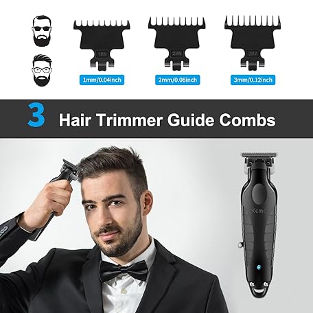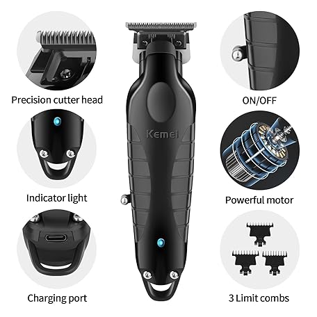 Thông tin sản phẩm KEMEI PG2299 Professional Hair Clippers for Men, Cordless Beard Trimmer, Electric T-Blade Zero Gap Hair Trimmer, USB Rechargeable with 3 Guide Combs