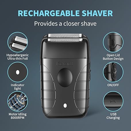 Thông tin sản phẩm KEMEI Professional Electric Foil Shaver for Men, Beard Trimmer & Men's Grooming Tool, Foil Shaving and Bald Head Precision Trimmer. Cordless and Rechargeable with USB. Gifts for Men