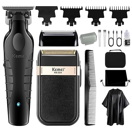 KEMEI Professional Hair Clippers and Foil Shavers Set, Electric Hair Clippers for Men, Cordless Men's Electric Shavers, T Blade Zero Gapped Hair Trimmer, Rechargeable Detailer Trimmer Electric Razor