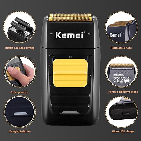 KEMEI Professional Hair Trimmer for Men Cordless, Foil Shaver with Replacement Heads & Nets, Zero Gapped Hair Clippers with T Blade, Electric Head Shavers for Bald Men, KM 2299, KM 1102