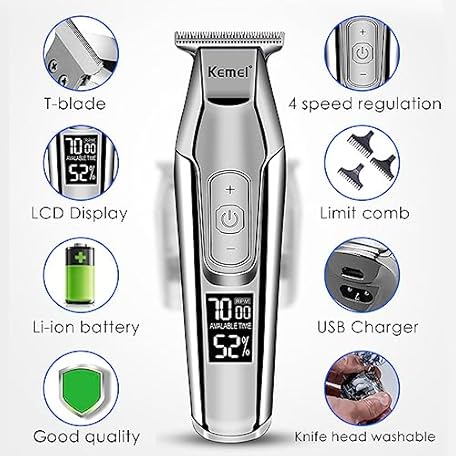 Thông tin sản phẩm KEMEI Trimmer Cordless Hair Clipper for Men Professional Electric Beard Trimmers Barber Hair Cuttings Kit, Zero Gapped T Blade Detailers Trimmers for Men, KM-5027