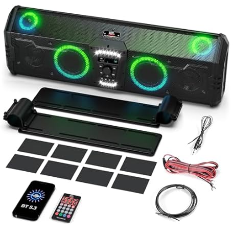 KEMIMOTO Midnight 90 UTV Sound System All-in-One, Deep Bass Dual Subwoofers BT5.3, 800W Max, IP66 Waterproof Outdoor RGB Roof Audio Speakers w/FM Radio Compatible with Maverick X3/ R, RZR