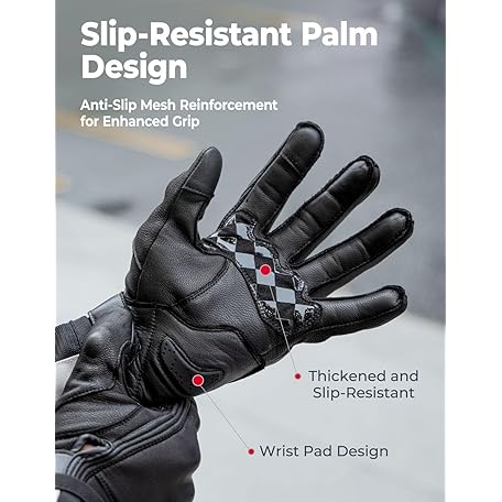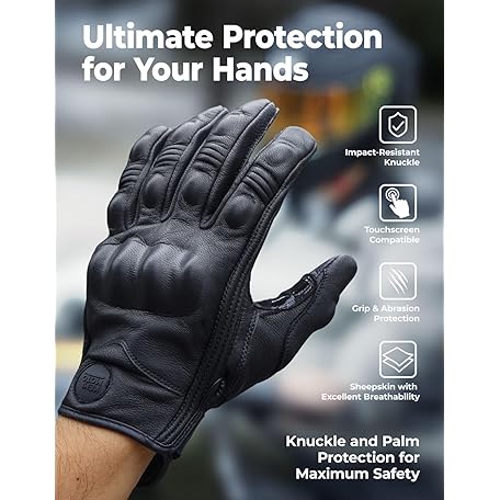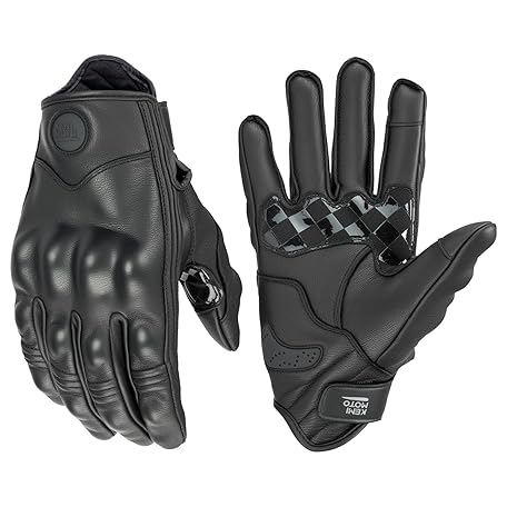 Thông tin sản phẩm KEMIMOTO Motorcycle Leather Gloves, Sheepskin Protective Gloves for Men and Women, Touchscreen Compatible, Hard Knuckle, Gear for Motorcross Racing Cycling