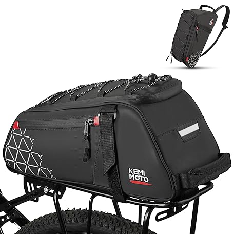 Sản phẩm KEMIMOTO Rear Bike Rack Bag - 8L PVC Water Resistant Ebike Bags for Bicycle Rear Rack, Bicycle Trunk Pannier for Commuter Travel Shopping and Cycling (Black) đang được bán với giá ưu đãi là $32.6891 tại nước Mỹ.