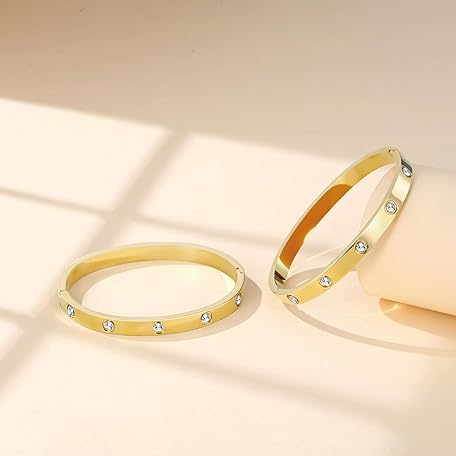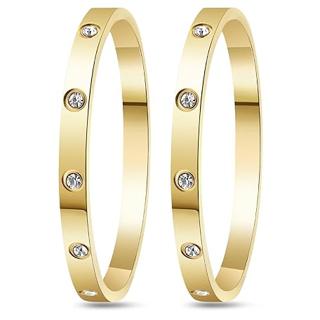 Sản phẩm Kenizum 2Pcs 18K Gold-Plated Love Bangle Bracelets set for Women, Stainless Steel Cubic Zirconia Bangle Crystal Friendship Jewelry, Easter Wedding Birthday Gifts for Girlfriend, Wife, Monther đang được bán với giá ưu đãi là $16.3391 tại nước Mỹ.