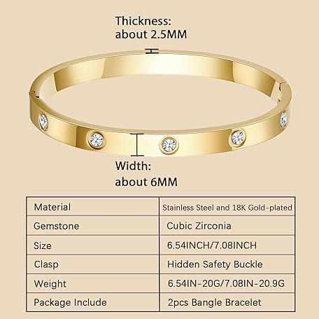 Thông tin sản phẩm Kenizum 2Pcs 18K Gold-Plated Love Bangle Bracelets set for Women, Stainless Steel Cubic Zirconia Bangle Crystal Friendship Jewelry, Easter Wedding Birthday Gifts for Girlfriend, Wife, Monther