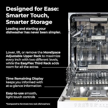 Kenmore 22-14602 24" Built-In Dishwasher - UltraWash Plus, TurboDry, SmartWash & EasyFlex Third Rack - 15 Place Settings - 45 DBA - ENERGY STAR Certified - 24" - White