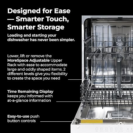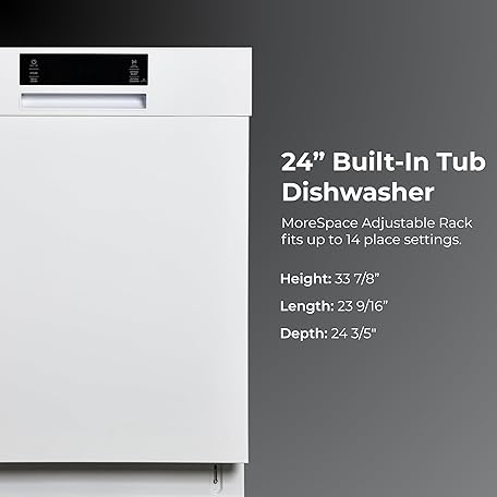 Kenmore 24" Built-in Stainless Steel Tub Dishwasher SmartWash, UltraWash, SmartDry Plus, MoreSpace Adjustable Rack and Leak Detect, Energy Star Certified, White
