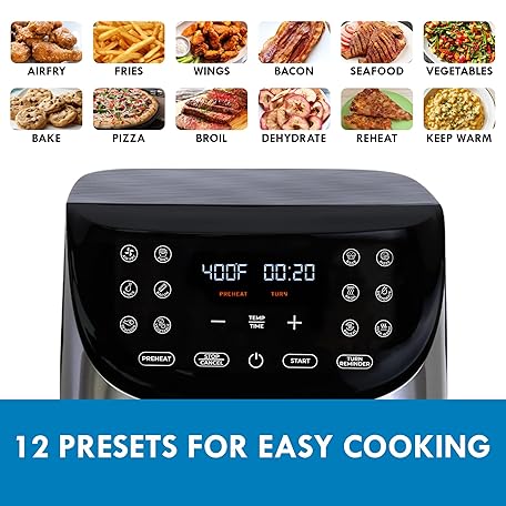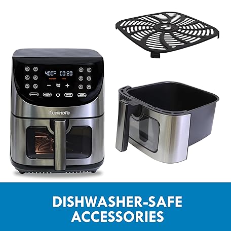 Thông tin sản phẩm Kenmore 8 Quart Air Fryer - Aerogrill, Non-Stick Frying Basket, French Fry, Digital Touch Screen, 12 Presets, Freidora Eléctrica, Countertop Cooking Kitchen Appliance, Stainless Steel, Black