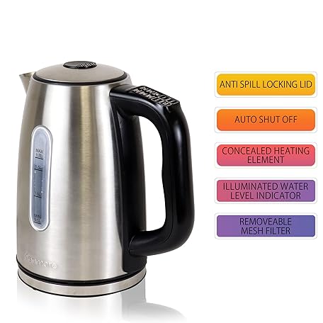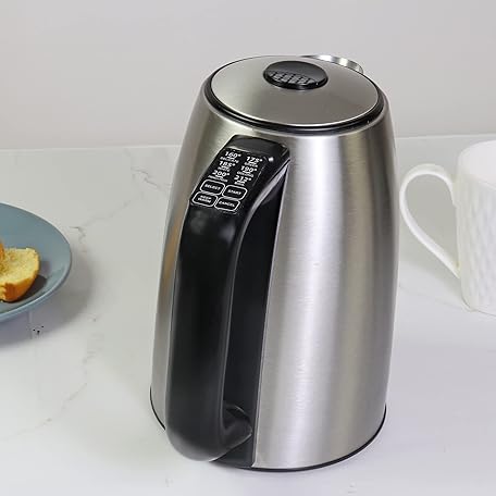 Thông tin sản phẩm Kenmore Electric Kettle - Cordless Digital Calentador De Agua, Stainless Steel Instant Tea Pot, Preset Temperature Control, Automatic Shut-Off, Rapid Boil, Hot Water Boiling Heater, 1.7 Liter Silver
