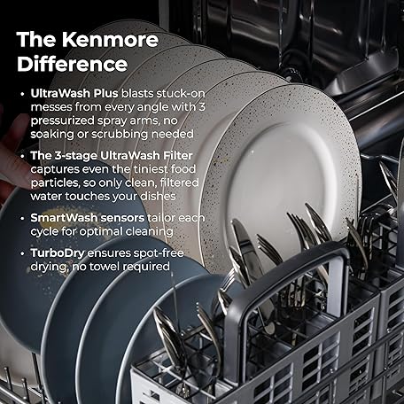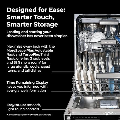 Kenmore Elite 24" Built-in Stainless Steel Tub Dishwasher TurboDry, QuietWash, SmartWash & TurboFlex Third Rack-15 Place Settings-42 DBA, Energy Star Certified, Fingerprint Resistant