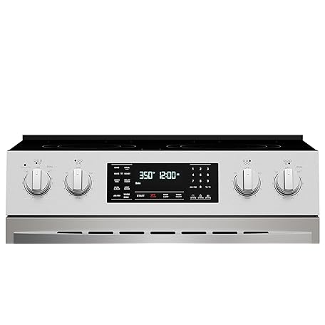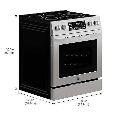 Thông tin sản phẩm Kenmore Front Control Electric Range Oven with 5 Cooktop Elements with 7 Cooking Power Options, True Convection, Steam and Self Clean, Freestanding Oven, 4.8 cu. ft. Capacity Stainless Steel