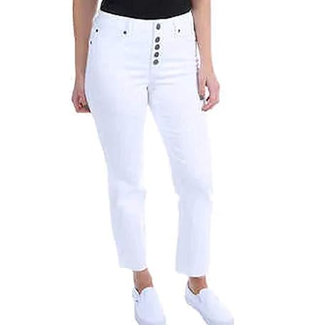 Kenneth Cole Ladies' Button Fly High Rise Straight Leg Comfort Stretch Jean (8/29, White-Watch)