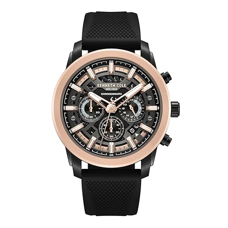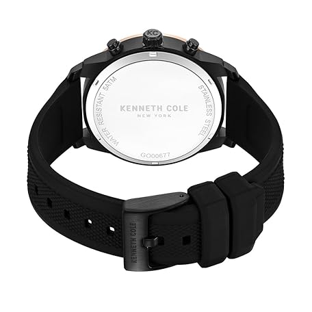 Kenneth Cole New York Men's Chronograph Watch – 44mm Stainless Steel Case with Black Dial, Gunmetal Accents, Date Display, and Black Silicone Strap