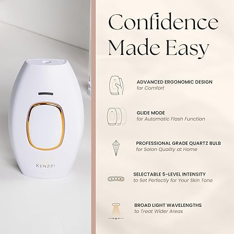 Thương hiệu KENZZI là cái tên nổi tiếng được rất nhiều khách hàng trên thế giới chọn lựa. Với kiểu dáng đẹp mắt, sang trọng, sản phẩm Kenzzi IPL Hair Removal Handset for Women & Men: Pain-Free & Long-lasting Solution for Body & Face Hair Removal, An Alternative to Salon Laser Hair Removal Treatments, Permanent Results là sự lựa chọn hoàn hảo nếu bạn đang tìm mua một món cho riêng mình.