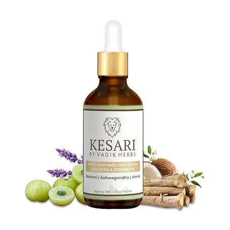KESARI Ayurvedic Hair Oil with Brahmi, Ashwagandha & Amla - Nourishing Scalp Treatment for Growth & Strength - 2 fl oz