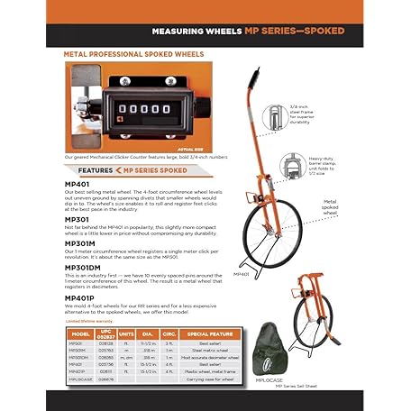 Thông tin sản phẩm Keson MP401 Metal Frame Measuring Wheel with Spoked Wheel (Graduations: ft.), 15-1/2-Inch Diameter, 4-Foot