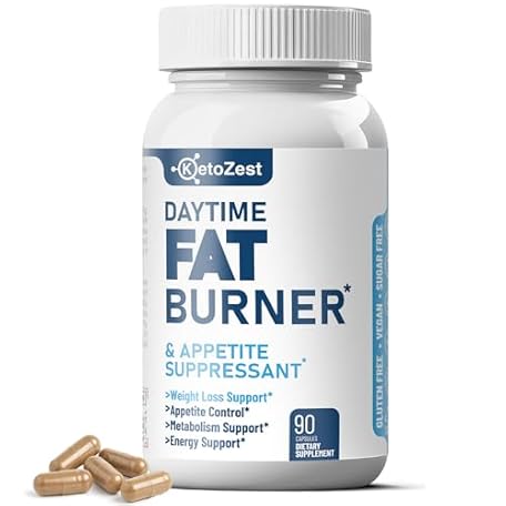 • KetoZest Fat Burner Appetite Suppressant for Weight Loss - Daytime Men Women Natural Thermogenic Fat Burning Diet Pills with Green Tea Caffeine - Curb Hunger Appetite Control Belly Fat Burn Support