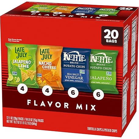 Sản phẩm Kettle Brand and Late July Snacks Mix Variety Pack, 20 Count Snack Bags đang được bán với giá ưu đãi là $13.9411 tại nước Mỹ.