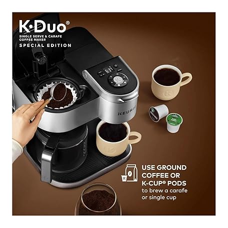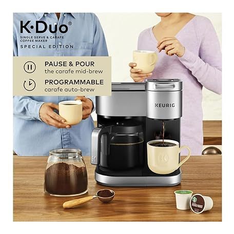 Keurig K-Duo Special Edition Coffee Maker – Single Serve & Carafe, Compatible with K-Cup Pods & Ground Coffee, Silver Finish Renewed