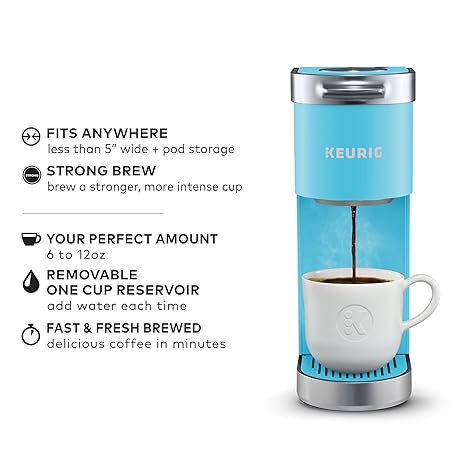 Thương hiệu Keurig là cái tên nổi tiếng được rất nhiều khách hàng trên thế giới chọn lựa. Với kiểu dáng đẹp mắt, sang trọng, sản phẩm Keurig K-Mini Plus Single Serve K-Cup Pod Coffee Maker, with 6 to 12oz Brew Size, Stores up to 9 K-Cup Pods, Travel Mug Friendly, 1500 watts, Cool Aqua là sự lựa chọn hoàn hảo nếu bạn đang tìm mua một món cho riêng mình.