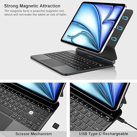Keyboard Case for iPad Air 11-inch M3 / Air 5th 4th Generation - Magic-Style Magnetic Keyboard Case with Multi-Touch Trackpad Compatible with Apple iPad Air 11” M3/M2 (2025/2024), Air 5/Air 4