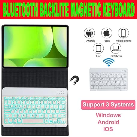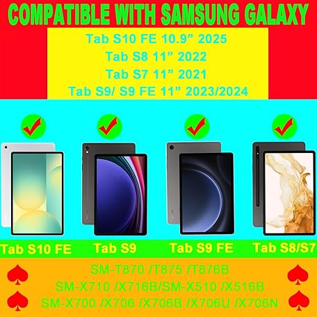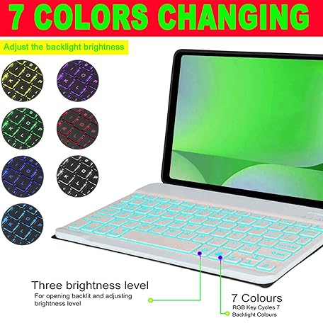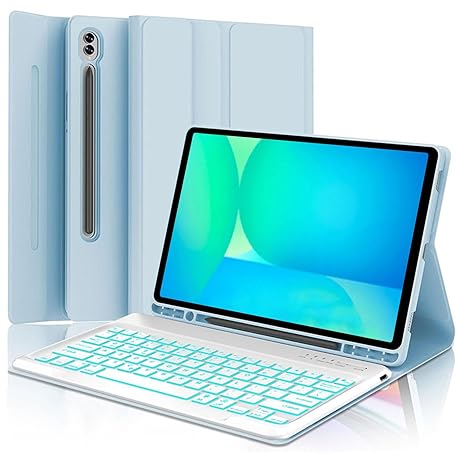 • Keyboard Case for Samsung Galaxy Tab S10 FE / S10 Lite 10.9 Inches, S7/ S8/ S9/ S9 FE 11" Smart Backlit Case Keyboard with Pen Holder (Sky Blue)