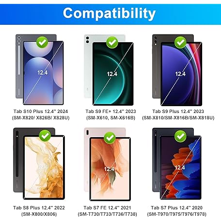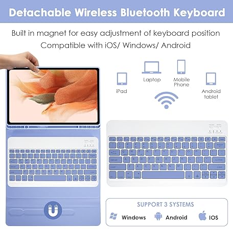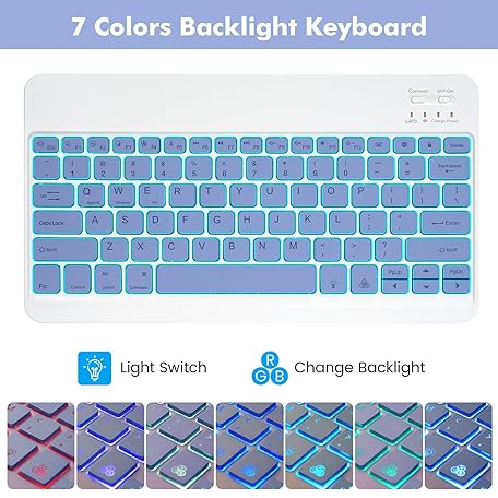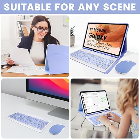 Keyboard Case for Samsung Galaxy Tab S10 Plus/S9 Plus/S9 FE Plus/S8 Plus/S7 Plus/S7 FE 12.4 Inch, 7 Color Backlit, Detachable Bluetooth Keyboard Case with Wireless Mouse and S Pen Holder, Purple
