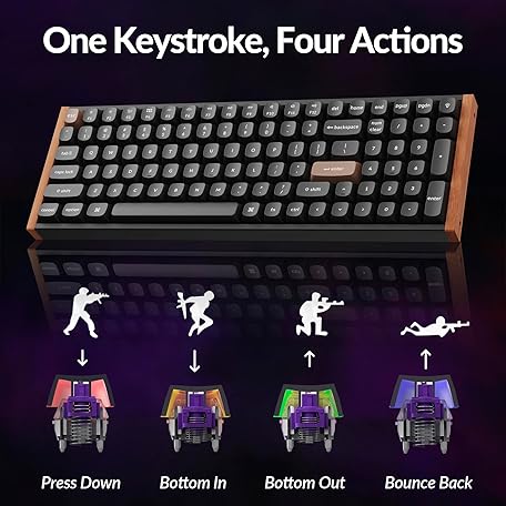 Keychron K4 HE – 96% Compact Hall Effect Wireless Mechanical Keyboard with Number Pad, Magnetic Switch, Rapid Trigger, Custom RGB, QMK/VIA, 2.4GHz/BT5.2/Wired, for Mac/Windows/Linux, Wood Frame, Black