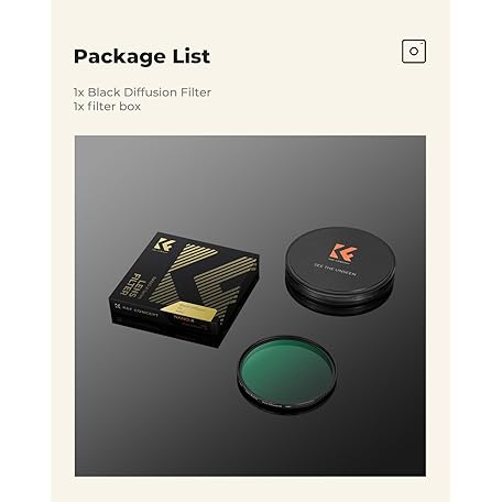 Thương hiệu K&F Concept là cái tên nổi tiếng được rất nhiều khách hàng trên thế giới chọn lựa. Với kiểu dáng đẹp mắt, sang trọng, sản phẩm K&F CONCEPT 62mm Black Diffusion 1/4 Filter Mist Cinematic Effect Filter with 28 Multi-Layer Coatings Waterproof/Scratch Resistant for Video/Vlog/Portrait Photography là sự lựa chọn hoàn hảo nếu bạn đang tìm mua một món cho riêng mình.