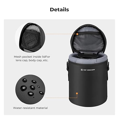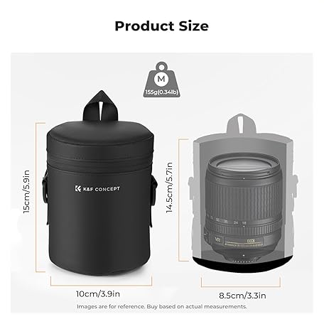 • K&F CONCEPT Camera Lens Pouch Case, Waterproof Zipper Lens Protective Bag, Shockproof All-round Camera Lens Carry Bag for DSLR SLR Lens Size Below 3.3" x5.7" (D x H)