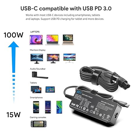 Sản phẩm KFD 100W USB C Universal Laptop Charger for MacBook Razer MSI LG Sony ASUS Lenovo HP Dell Samsung Acer Surface Gateway Huawei Fujitsu Toshiba Tablet Speaker Smartphone PD Power Supply Cord Cable đang được bán với giá ưu đãi là $47.9491 tại nước Mỹ.