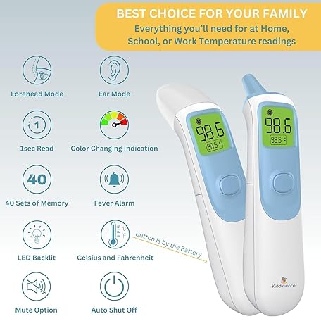 Thương hiệu Kiddieware là cái tên nổi tiếng được rất nhiều khách hàng trên thế giới chọn lựa. Với kiểu dáng đẹp mắt, sang trọng, sản phẩm Ear and Forehead Baby Thermometer for Infants to Adults Termometro Digital Baby Stuff Instant Read Ear Thermometer for Kids or Touchless Forehead Thermometer là sự lựa chọn hoàn hảo nếu bạn đang tìm mua một món cho riêng mình.