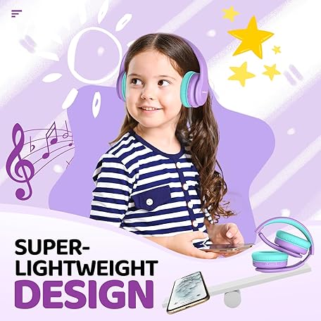 Thông tin sản phẩm Kids Bluetooth Headphones, Lightweight Wireless Headphones for Kids, 85/94dB Volume Limited, 60 Hours Playtime, Bluetooth 5.3, Over-Ear Toddler Headsets with Built-in Mic-Purple