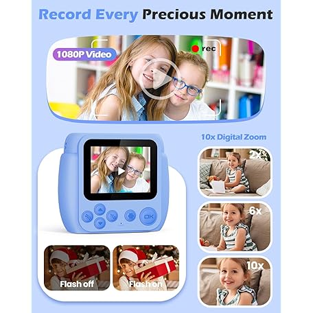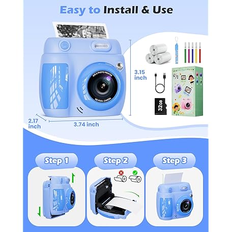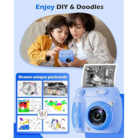 Kids Camera Instant Print - Christmas Birthday Gifts for Girls Boys Age 3-12, 1080P Video Digital Camera with 3 Rolls Printing Paper, Toddler Travel Toy Camera for 4 5 6 7 8 9 10 11 Year Old - Blue