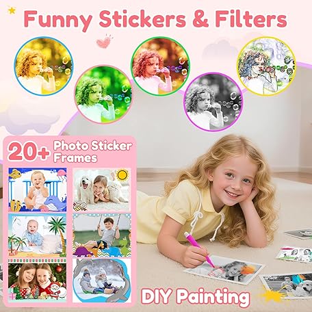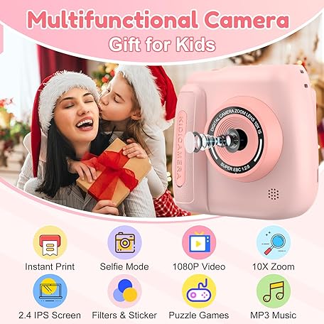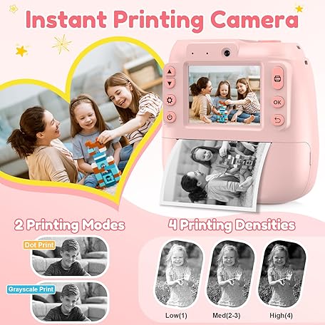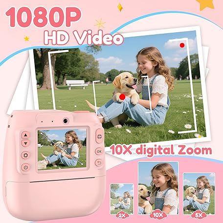 Kids Camera Instant Print, Kids Instant Camera with 1080P Videos, Christmas Birthday Gifts for Girls Boys Age 3-12, Portable Toddler Travel Digital Print Toy for 3 4 5 6 7 8 9 10 11 12 Year Old, Pink