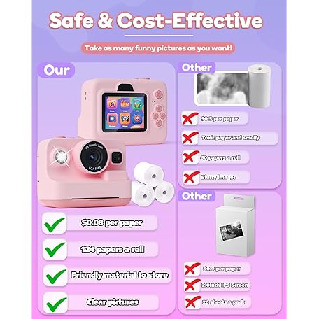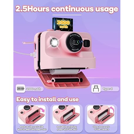 Thông tin sản phẩm Kids Camera Instant Print,1080P Kids Instant Cameras That Print Photos,Christmas Birthday Gifts for Girls Age 3-12,Portable Toy for 3 4 5 6 7 8 9 10 Year Old Girls Boys Pink