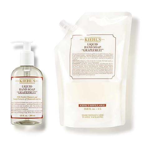 Thông tin sản phẩm Kiehl's Grapefruit Liquid Hand Soap Duo, Scented Hand Wash to Soothe & Condition Skin, Refill Pouch and Reusable Bottle