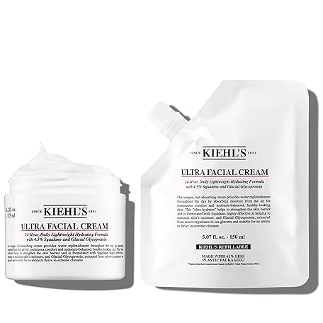 Kiehl's Ultra Facial Cream Duo, with 4.5% Squalane to Strengthen Skin's Moisture Barrier - Refill Pouch and 4.2 Fl Oz Reusable Jar