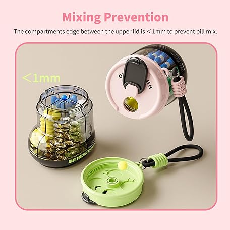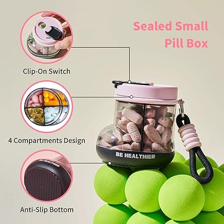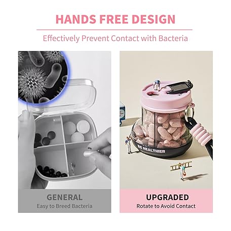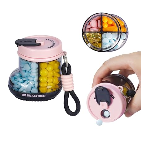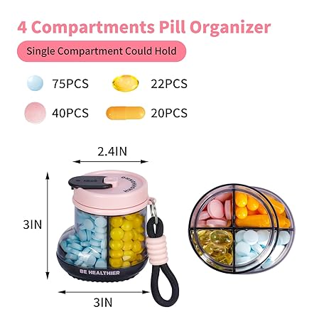 Thông tin sản phẩm KIGI Travel Pill Organizer, Small Pill Dispenser with 4 Compartments, Portable Vitamins Organizer with Handle